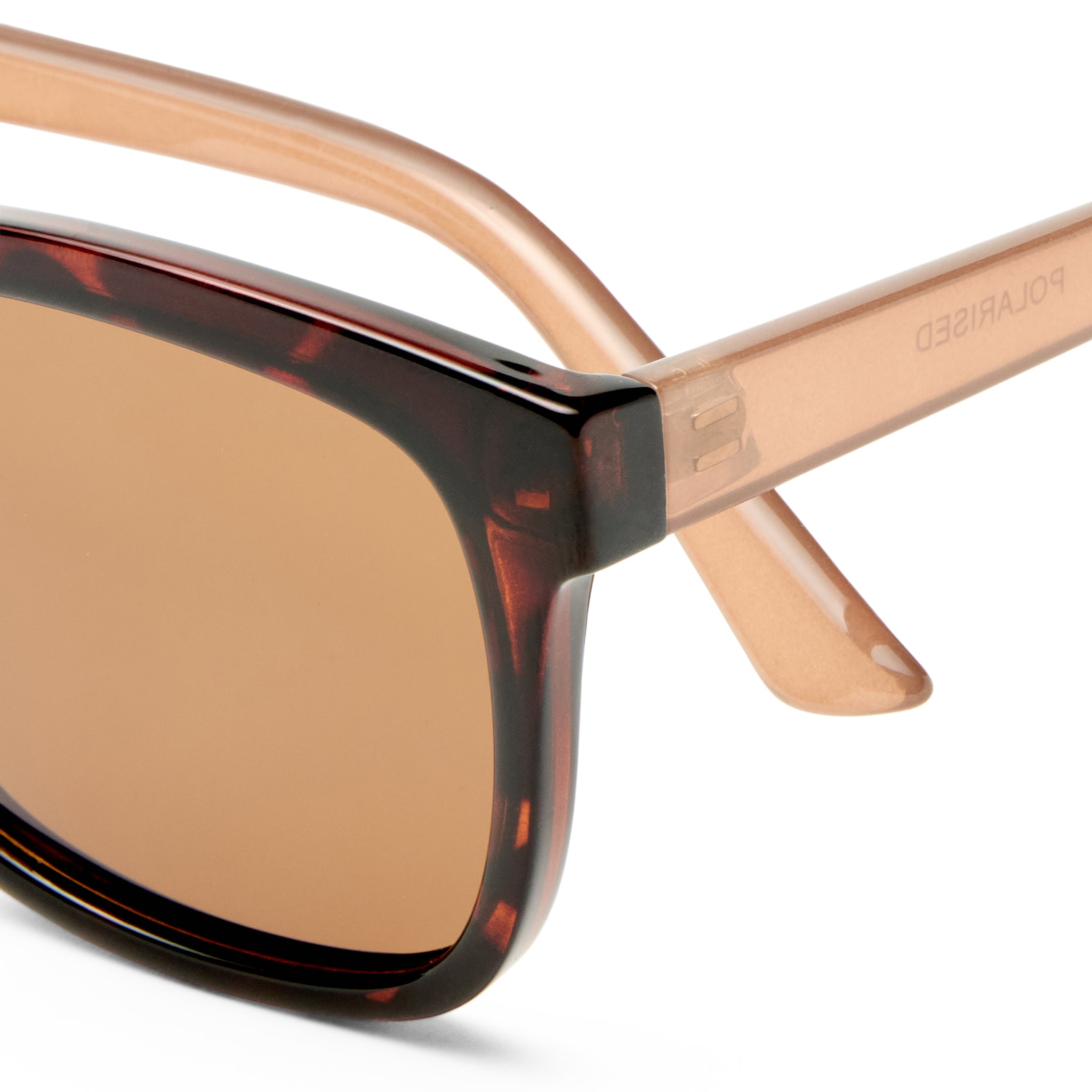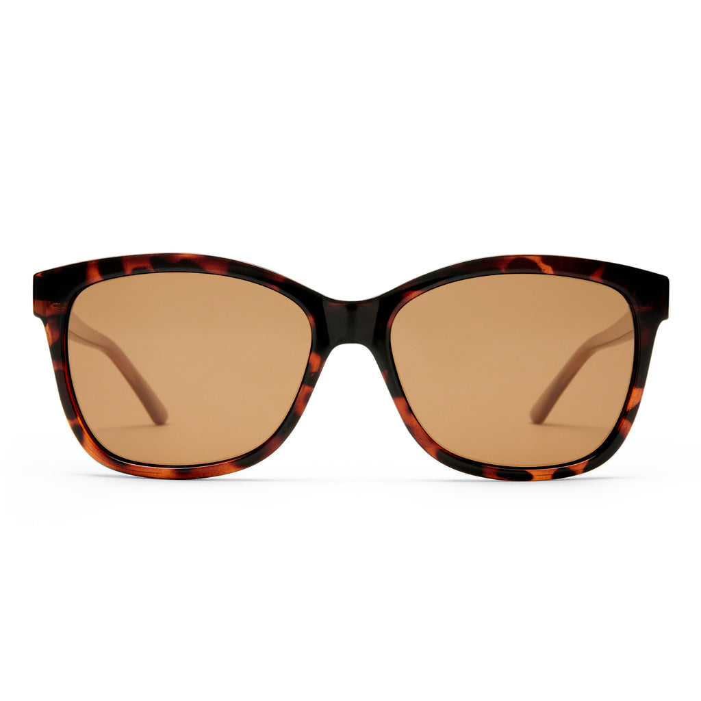 Allambie Petite in dark tort with tan temples is fitted with brown mono polarised lenses for reduced sunglare.