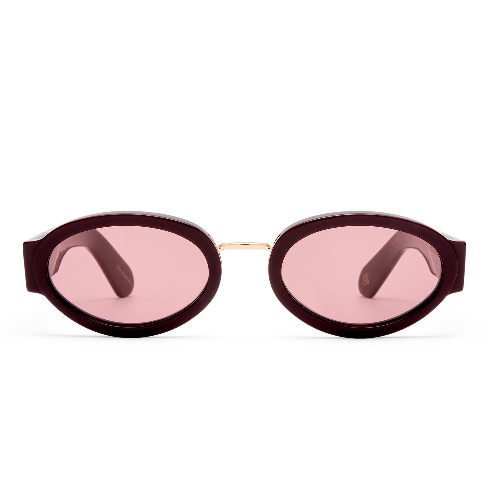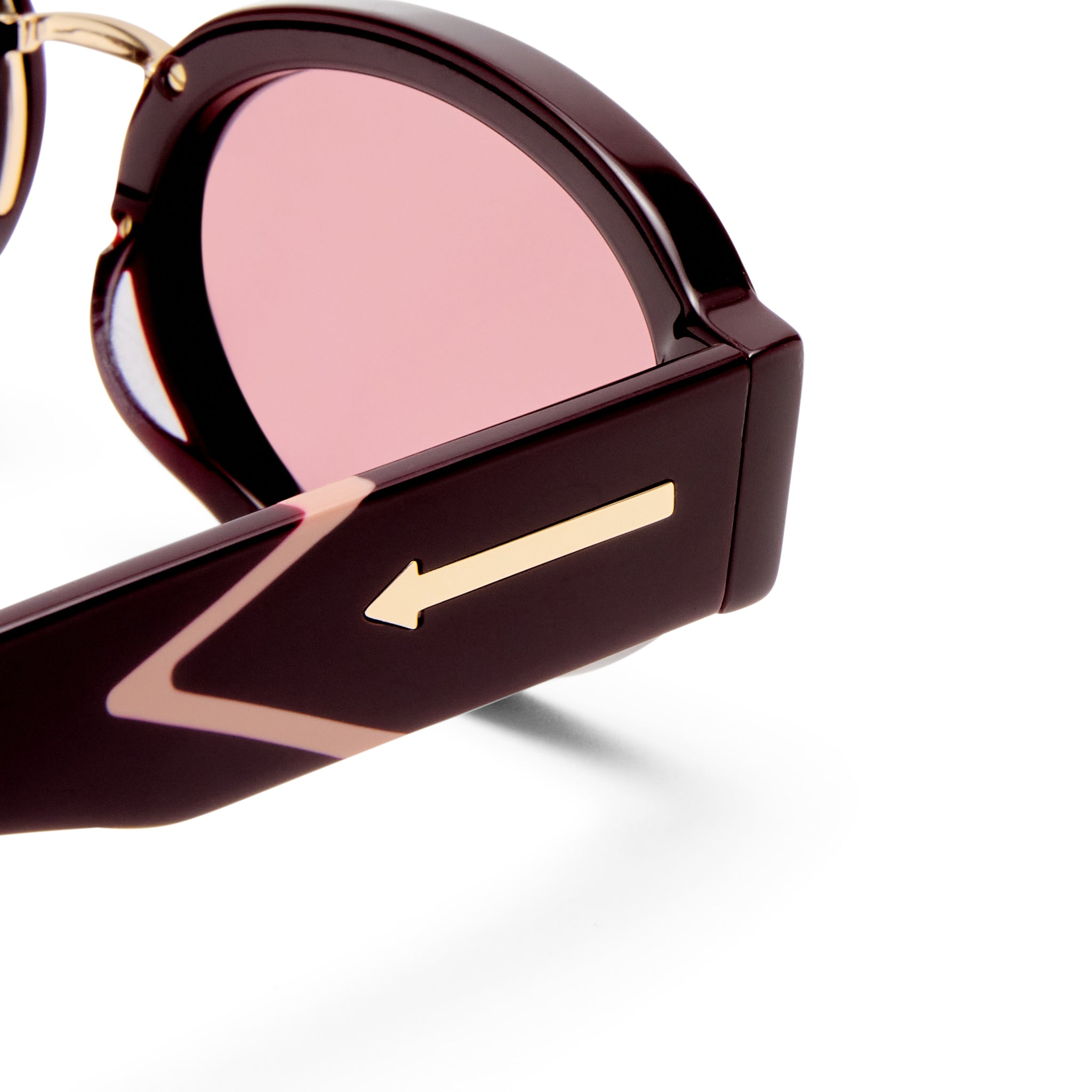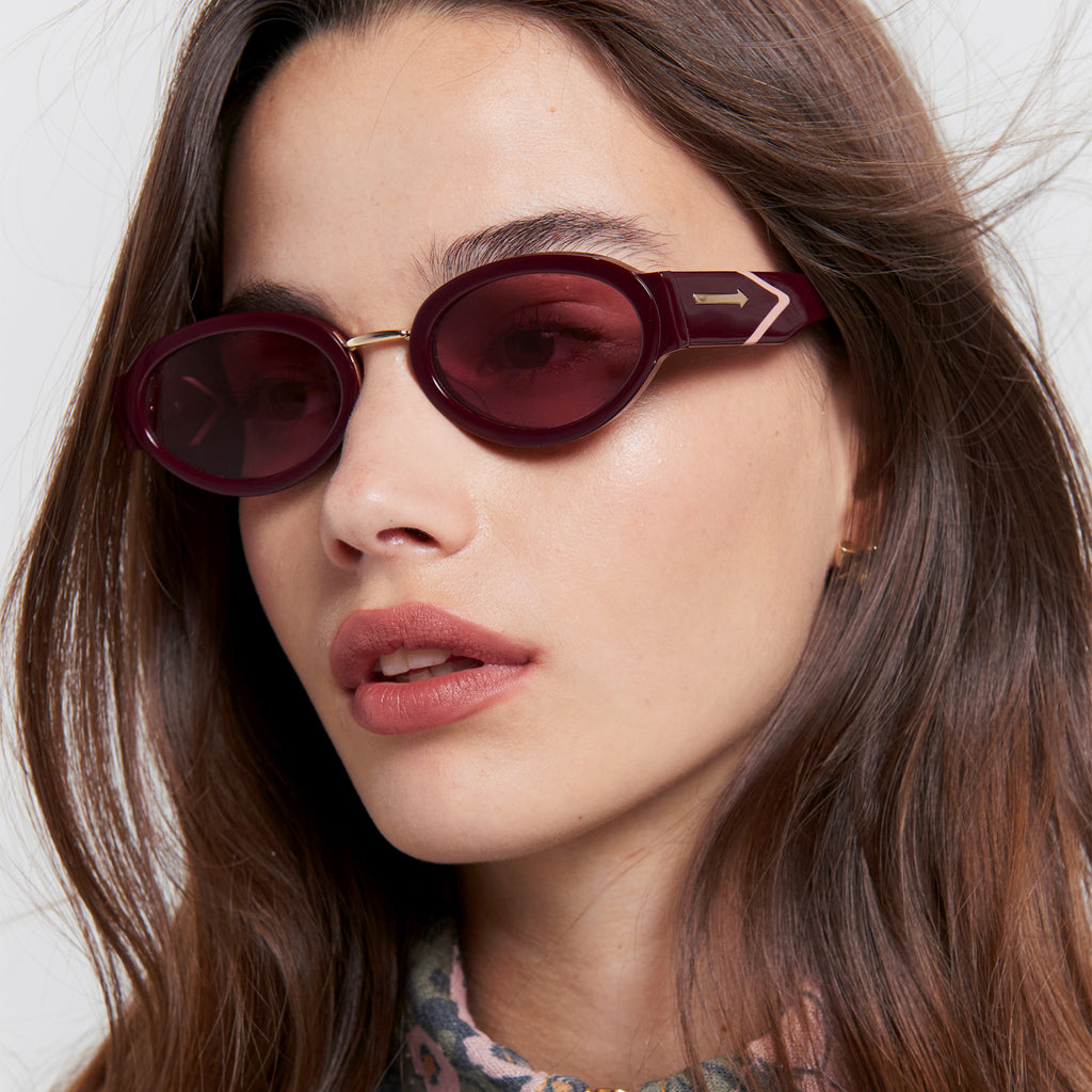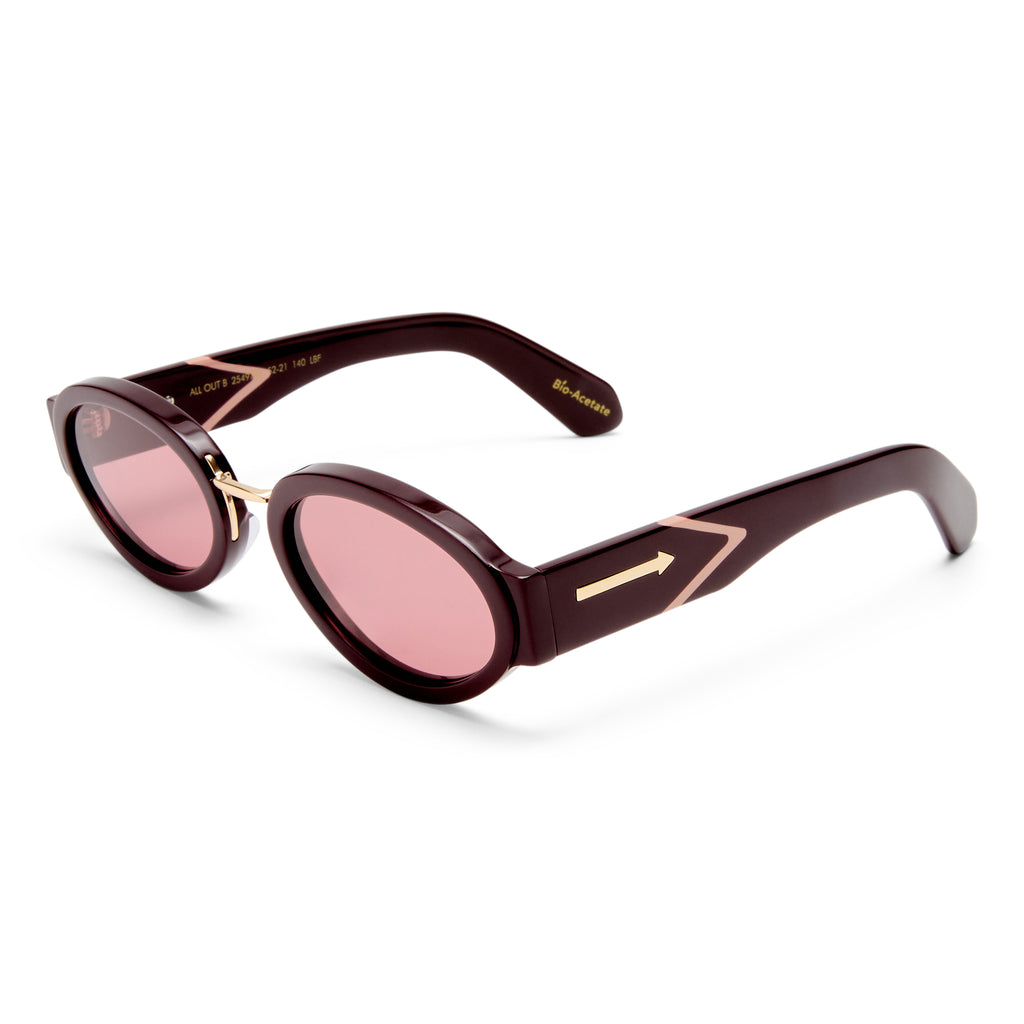 • Finished in an oxblood frame with dusty pink lenses.