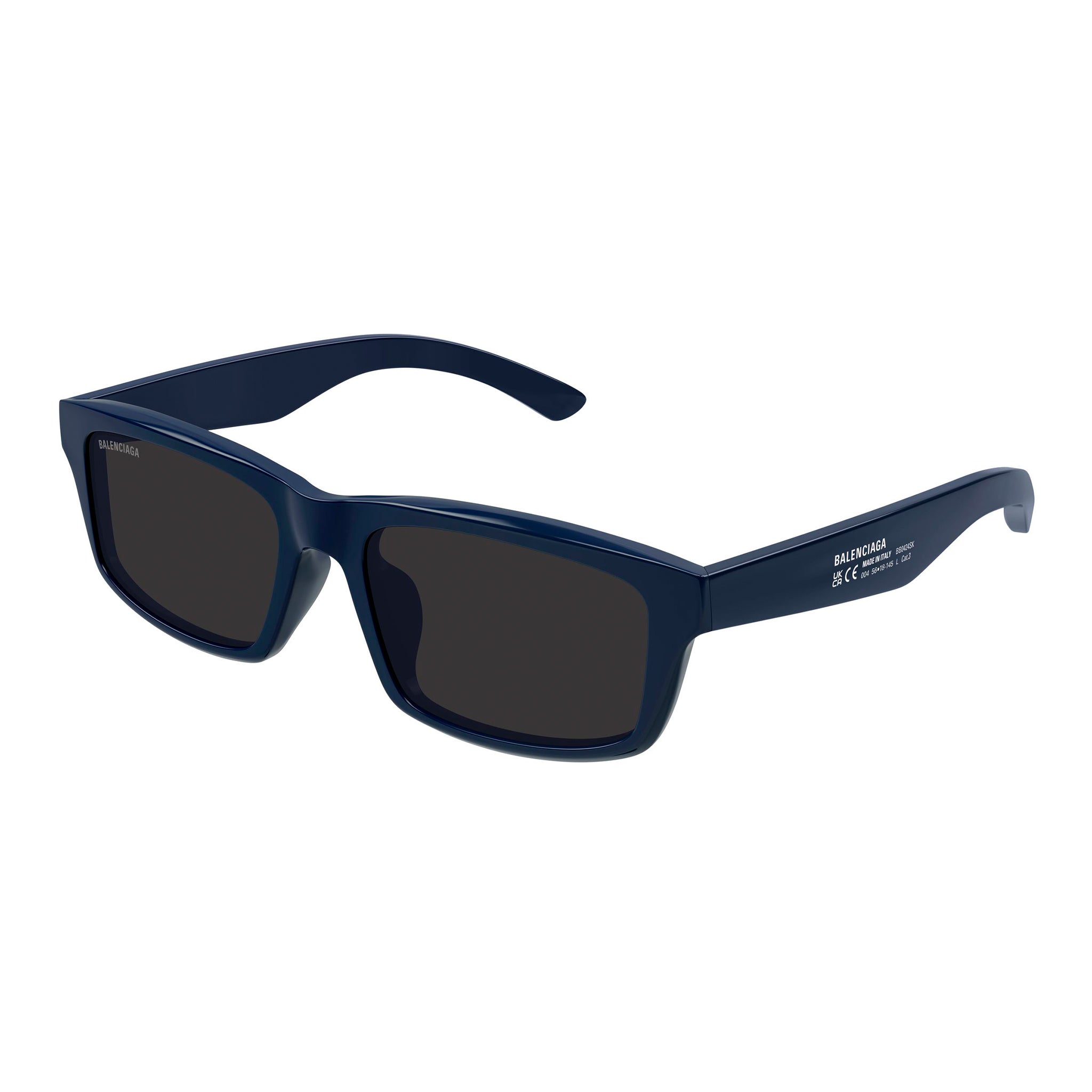 Full acetate masculine rectangular style. Concept characterised by technical info on the external part of the temple. The Balenciaga logo is enamelled on the outer part of the temple.