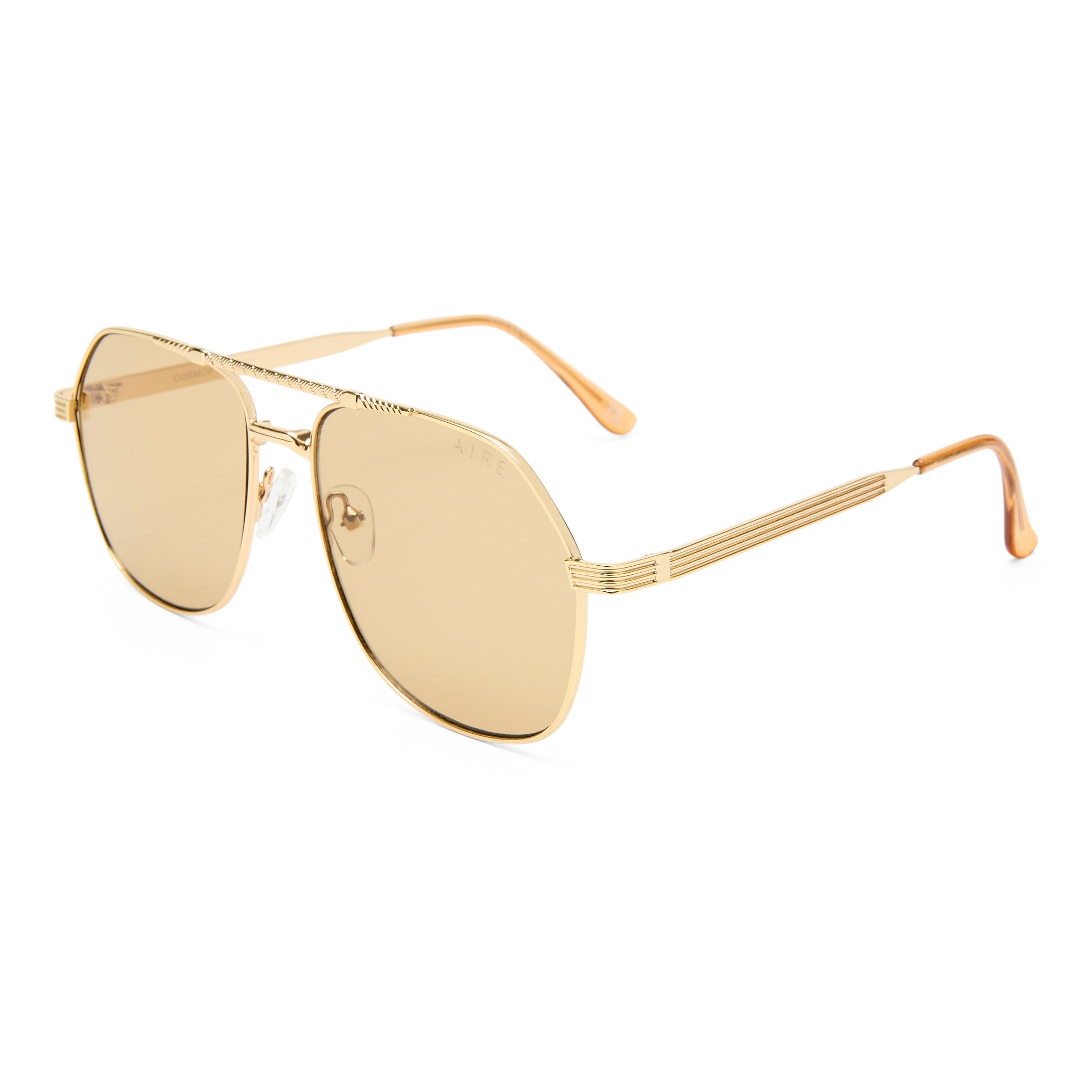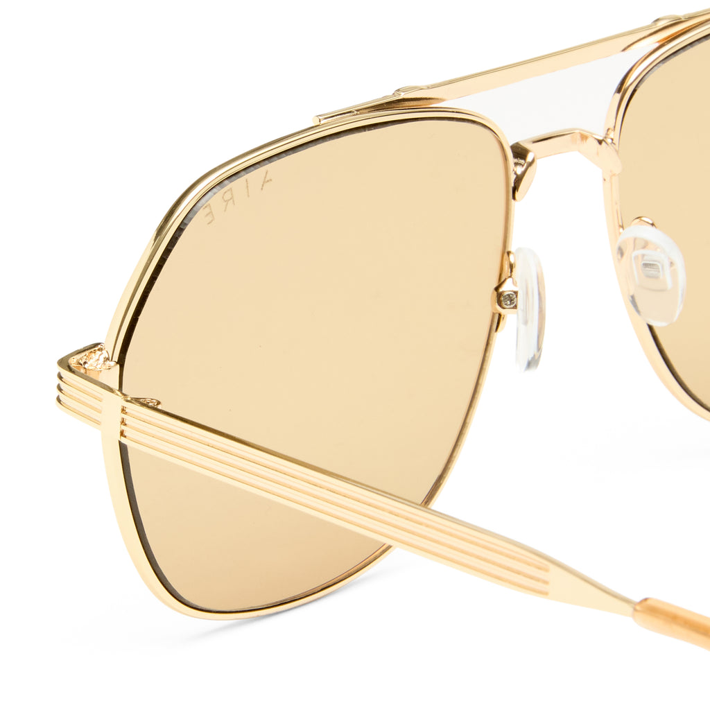 • Finished in a bright gold frame with tan tint lenses.